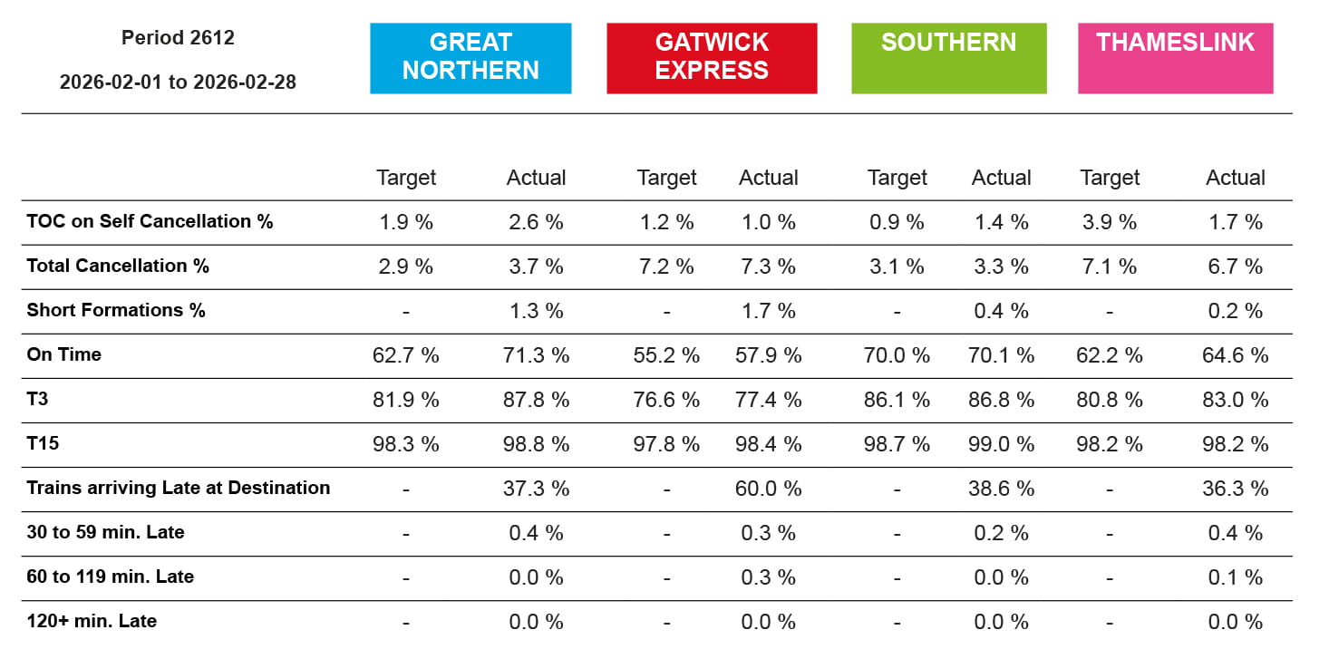 • PPM – the percentage of trains arriving at their destination within 5 minutes of schedule